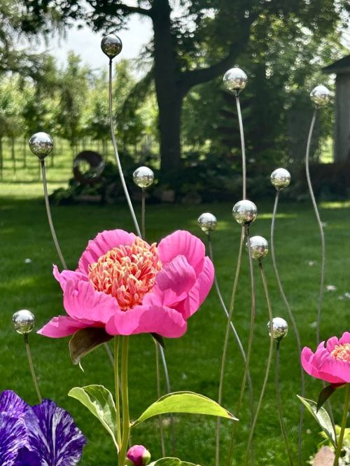 Add movement and interest to your garden with these playful swinging seedballs. Seven wavy metal rods each support a 1″ ball, swaying gently in the breeze. The sculpture includes a sturdy stake for easy installation.