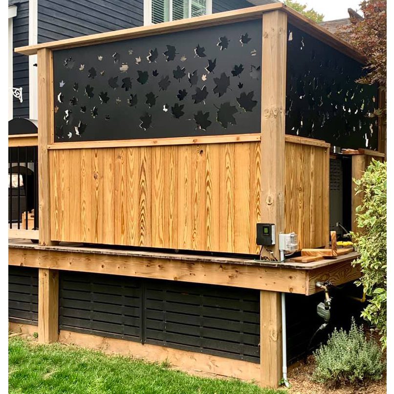 Modern metal privacy panels, complete with 3 Dimensional maple leaf cut outs.